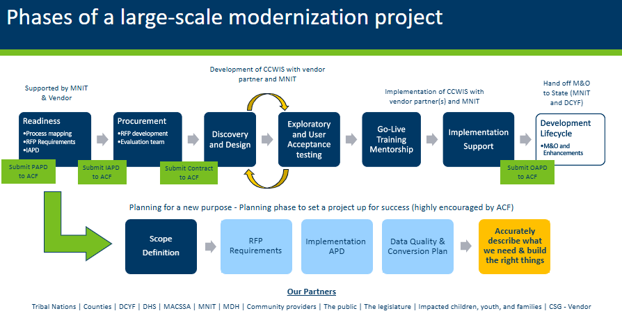 The goal is to build a modern system that meets federal rules called the Comprehensive Child Welfare Information System.